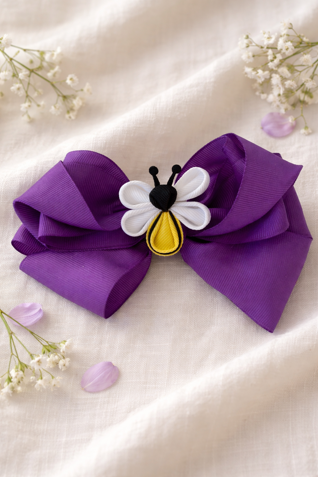 This collection includes three whimsical centerpiece styles, each with its own personality: a playful bee, a soft romantic floral accent, and a clean, classic knot design. Whether your dog is sweet, sassy, or effortlessly chic, there’s a Big Purple Bow here to match their vibe.