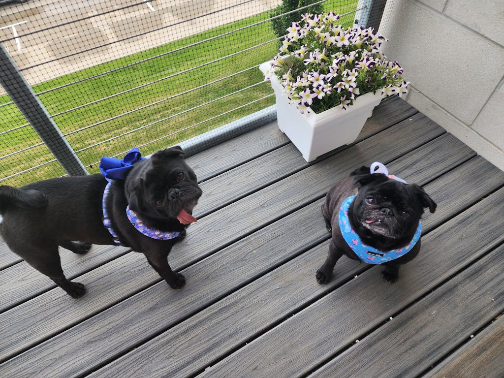 PHOTOS: Little Pug Beatrix (18 lbs) shown in size M SprinklePups harness.